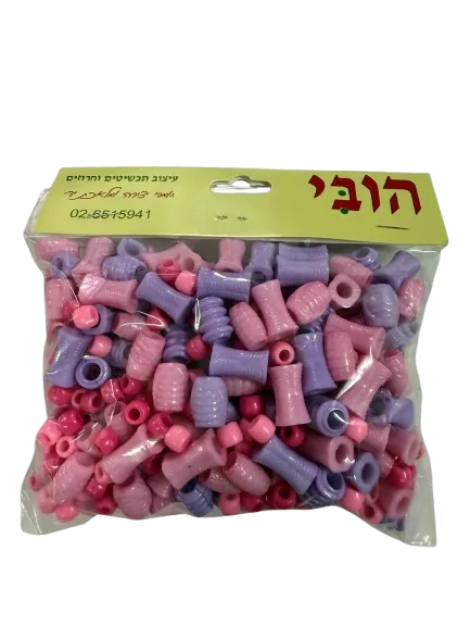 שקית חיסכון של חרוזי אקריל איכותיים עם חור גדול בגווני-ורוד